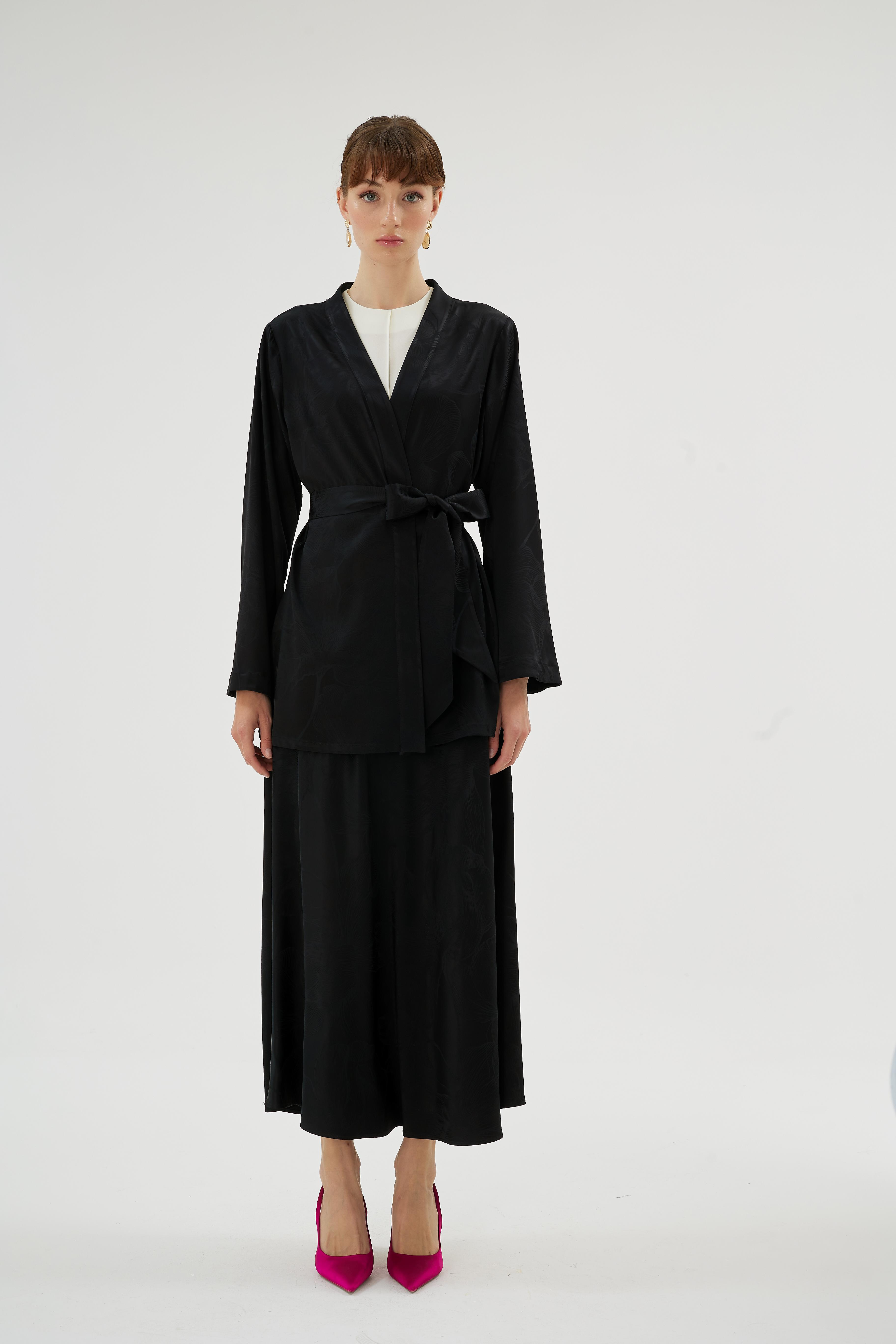 Cupro kumaştan yapılan verev kesim etek, rahat ve şık bir görünüm sunarak her adımda zarafet katıyor. Hem gündelik kullanımda hem de özel anlarda rahatlıkla tercih edilebilir.