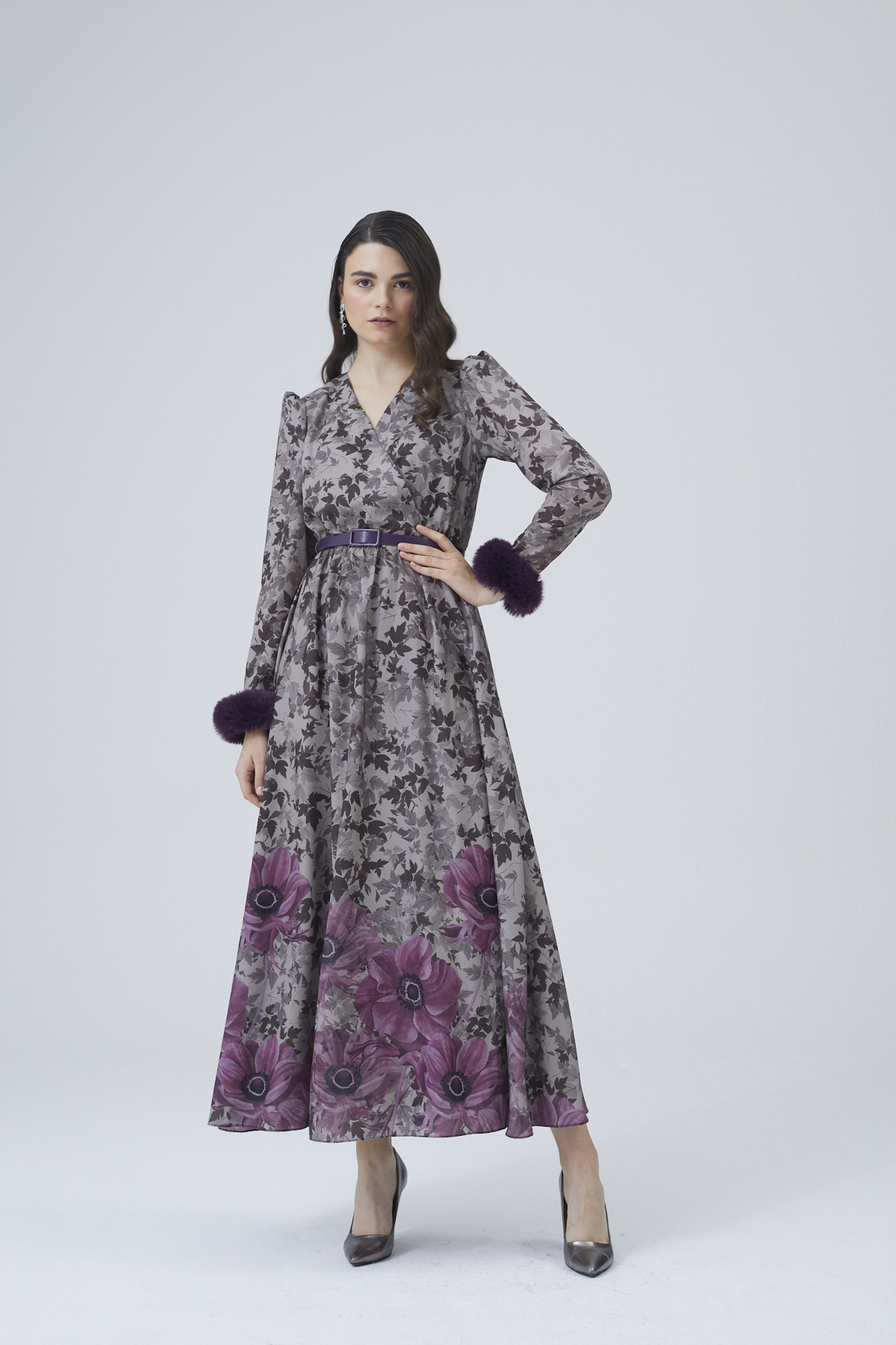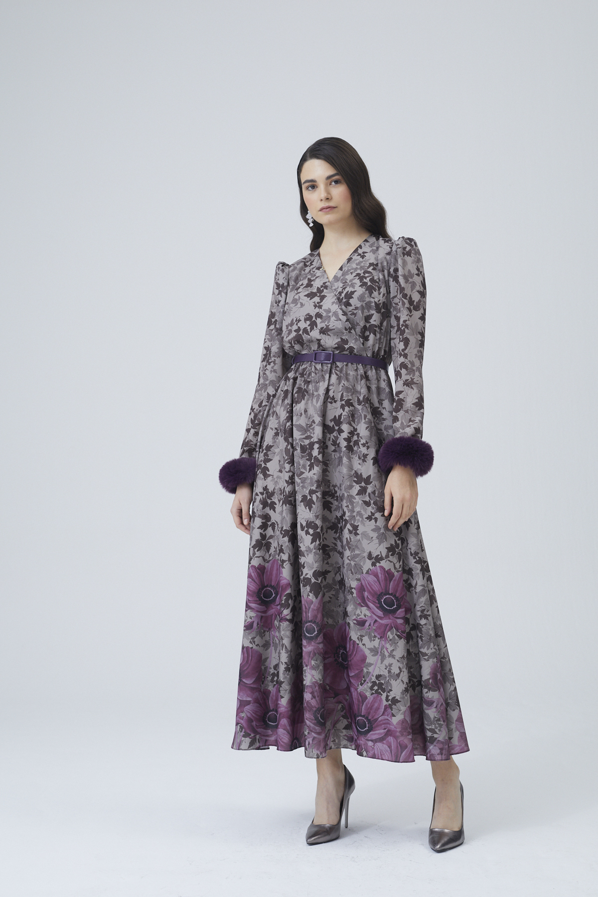 CONTOURED FLOWERS FUŞYA ELBİSE